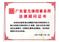 鳴晟不銹鋼榮譽證書